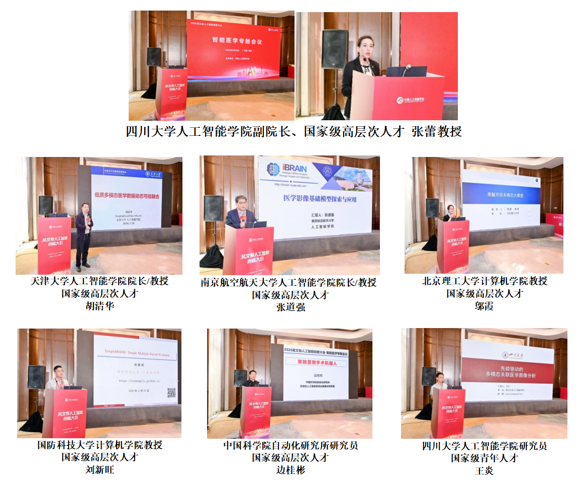 大会期间,由我院主办的“智能医学”专题会议同步召开,以“当 AI 遇见医学:一场重塑生命意义的范式革命”为主题,我院副院长、国家级高层次人才张蕾教授担任主席。张蕾教授团队长期致力于人工智能基础理论及智能医学交叉融合研究,在神经网络基础理论、智能医学信息处理等方向取得了系列原创性成果,并开发了多款具有自主知识产权的智能医学系统,涵盖辅助诊断、影像分析、健康管理等多类应用场景,构建了从基础理论到关键技术再到系统应用的全链条创新体系,标志着四川在智能医学交叉研究领域跻身国内外先进行列。